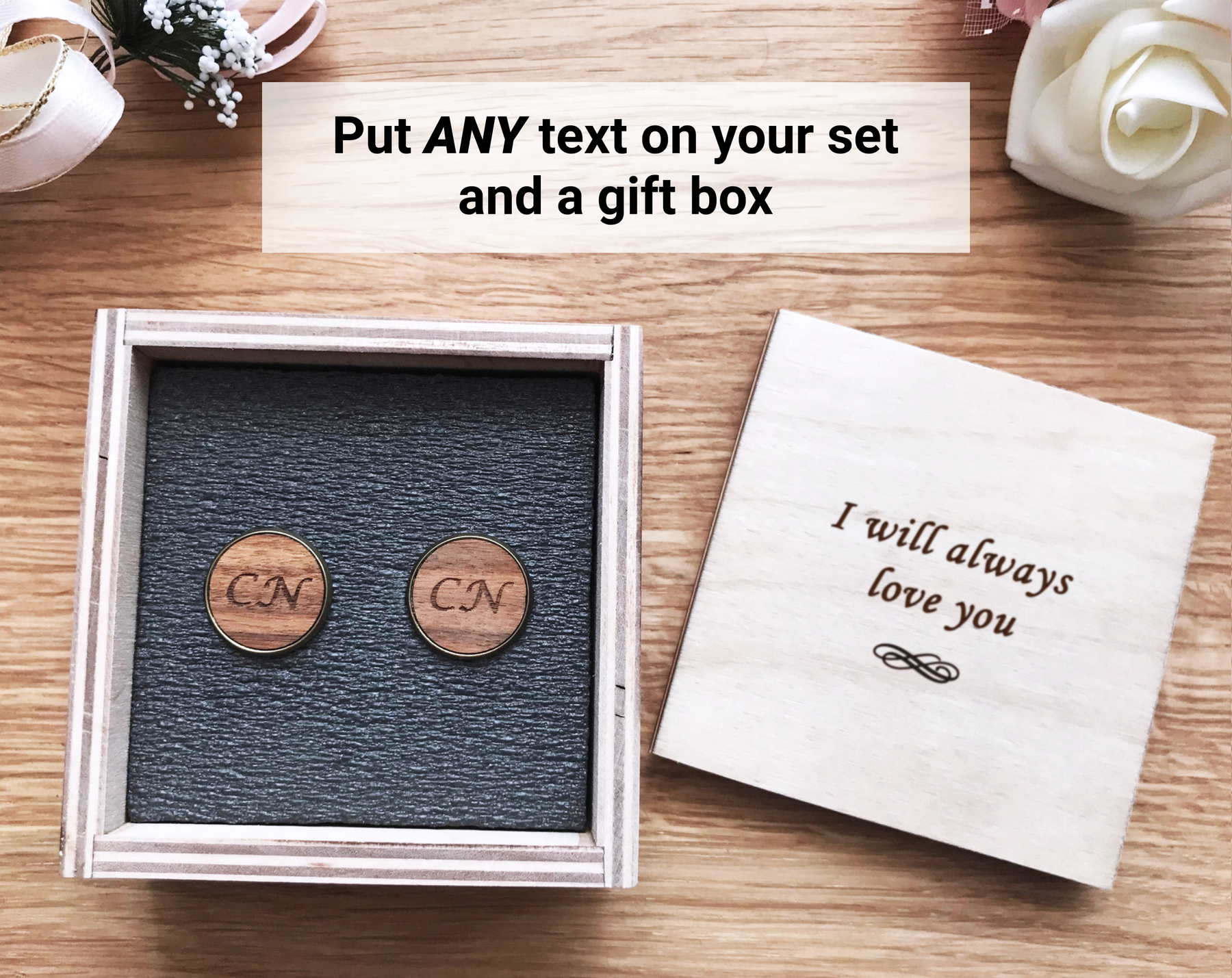 Make his special day even more unforgettable with our Personalized Wooden Cufflinks.