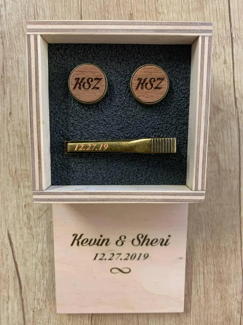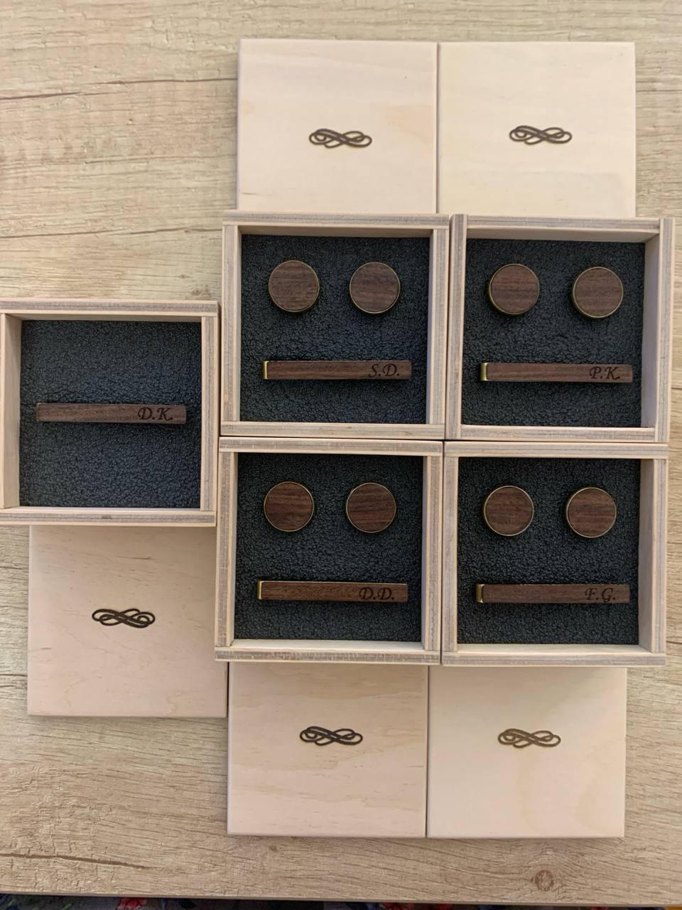 This custom set of cufflinks and tie clip can be personalized with a name, initial, date or whatever word or phrase of your choice.